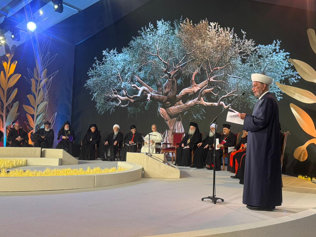 وفي لبنان نؤكِّدُ دائماً ثوابِتَنَا الوطنيةَ، في قِمَمِنا الرُّوحية ، ونَحتَرِمُ الحُرِّيَّاتِ الدِّينيَّةَ وحقوقَ الإنسان ، كأساسٍ للعيشِ المُشتركِ في مُجتمعِاتِنا المتنوِّعَةِ والمُتَعَدِّدة ، ولا نِتدِخَّلُ في الخصوصِيَّات ، فبلدُنا لبنان يَحمي دُستورُه حقَّ الطَّوائفِ في مُمارسةِ شرائعِها ، مِصداقاً لقولِه تعالى: ﴿لكلٍّ جعَلْنا مِنكُمْ شِرعَةً وَمِنهاجاً﴾.الإسلامُ هو المَسِيرَةُ الإيمانيَّةُ بِاللهِ الوَاحِد ، مِن آدمَ إلى نوحٍ وإبراهيم ، إلى موسى وعيسى ، وانتهاءً بمحمد ، عليهم جميعاً صلواتُ اللهِ وسلامُه.وقد قال اللهُ تعالى في مُحكمِ تَنزِيلِه: ﴿شَرَعَ لَكُم مِّنَ الدِّينِ مَا وَصَّىٰ بِهِ نُوحاً وَالَّذِي أَوْحَيْنَا إِلَيْكَ، وَمَا وَصَّيْنَا بِهِ إِبْرَاهِيمَ وَمُوسَىٰ وَعِيسَىٰ ۖ أَنْ أَقِيمُوا الدِّينَ وَلَا تَتَفَرَّقُوا فِيهِ﴾ .
